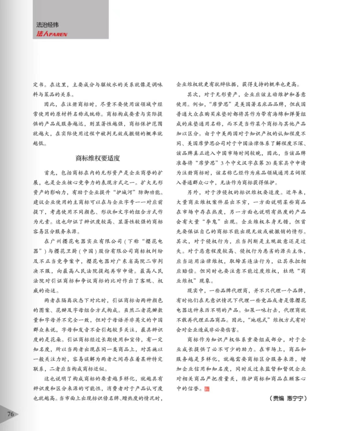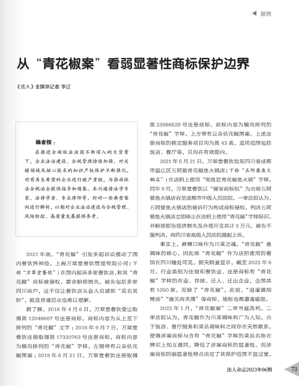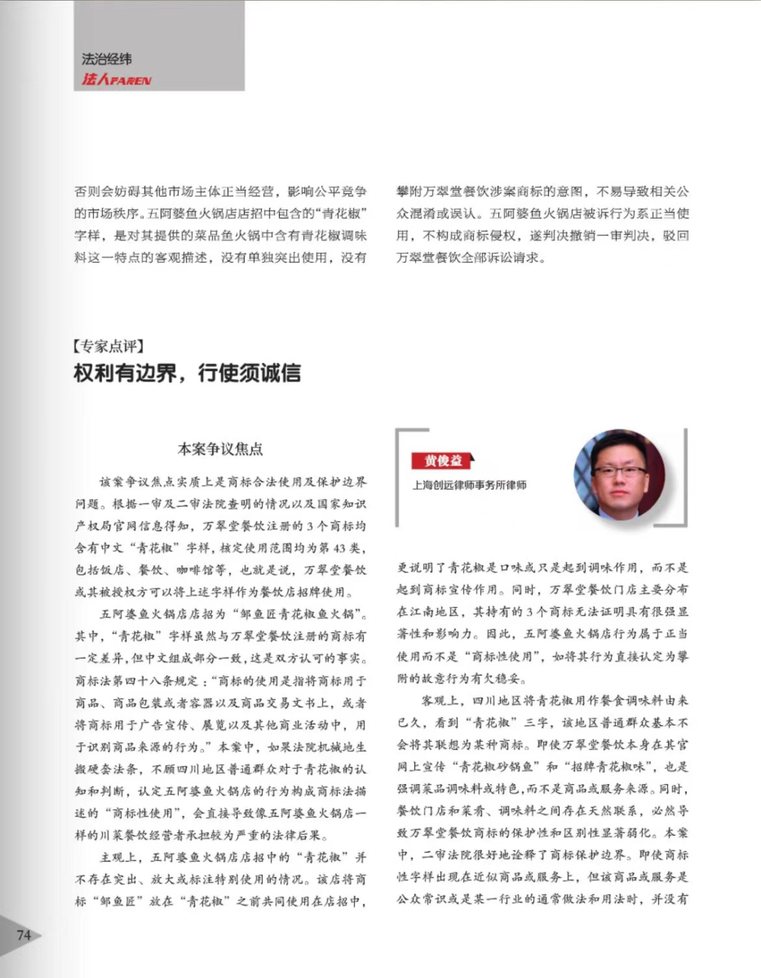 德阳辉知简讯 | 辉知队黄俊益律师应“法治日报”旗下杂志邀请,就“青花椒”案发表专家点评