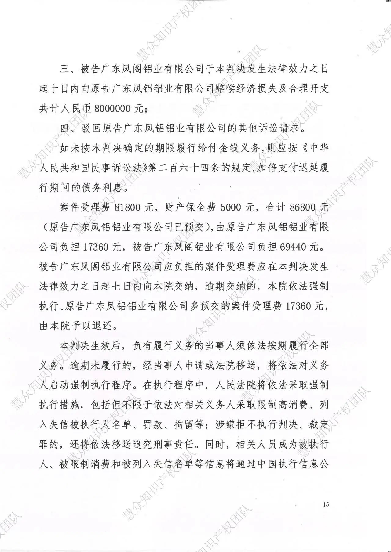 德阳判赔800万!辉知队代理“凤铝”商标维权案胜诉